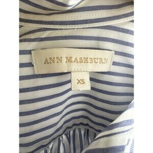 Ann Mashburn Mandarin Paulina Size XS Button Up Blue Striped Shirt Poplin