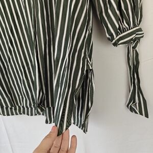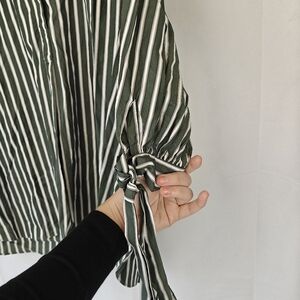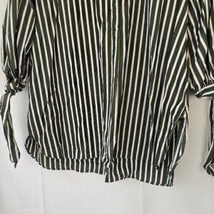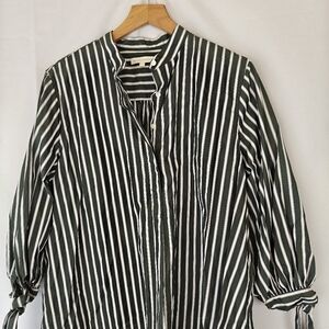Ann Mashburn Quarter Button Up 3/4 Tie Sleeve Striped Shirt Size Medium Women's