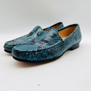Ann Mashburn Shoes Womens 35 US 5 Blue Green Python Loafers Made in Italy