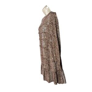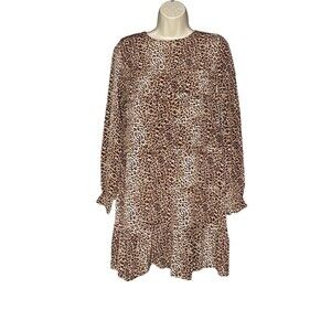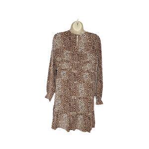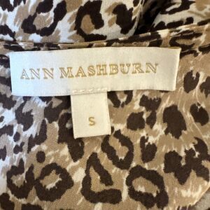 Ann Mashburn Size Small 100% Silk Animal Print Short Dress Brown Black Ruffled