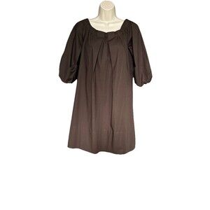 Ann Mashburn Size Small Pleated 3/4 Sleeves Mini Cotton Dress Brown Women’s