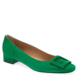 Ann Mashburn Suede Buckle shoe flat in Emerald Green Suede Sz 37.5