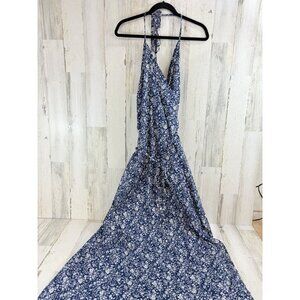 Ann Mashburn Sz L Wrap Halter Dress Liberty London Blue Summer Blooms Tana Lawn