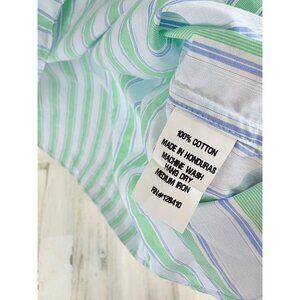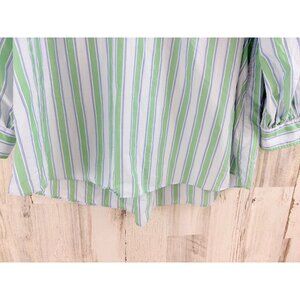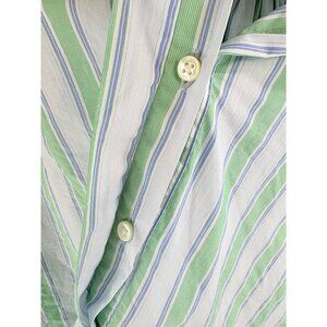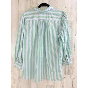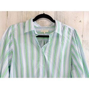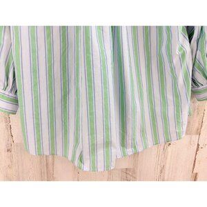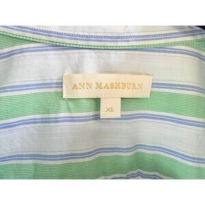 Ann Mashburn Sz XL Geraldine Popover Shirt Green Blue Stripe Poplin