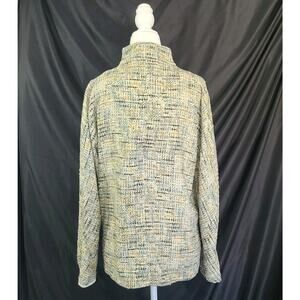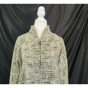 Ann Mashburn Womens Green Yellow Half Zip Pullover Sweater Tweed Jacket Small
