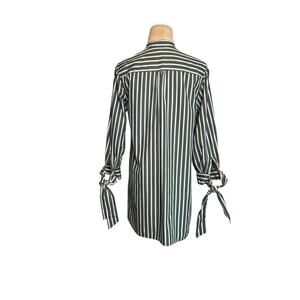 Ann Mashburn white gray stripes 3/4 sleeves tunic blouse size Small