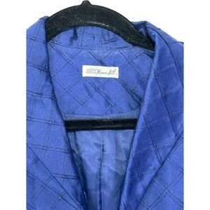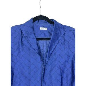Ann May 100% Woven Silk Open Style Jacket 3/4 Blue Detailed Design Large