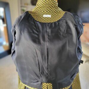 Elegant, cropped blazer with a vintage-inspired yellow and black woven pattern. Lightweight silk construction offers a polished look and comfortable wear.
