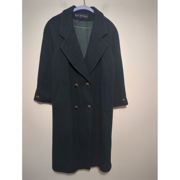 Up for sale is a - Ann Milstein Womens Wool Coat Acetate Lining Buttons Green Made in USA