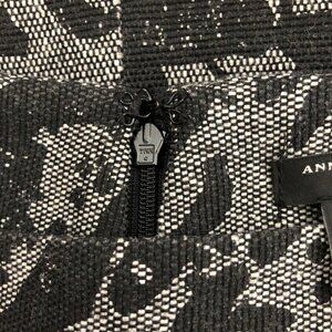 ANN TAYLOR FACTORY - Cotton Blend Black, Gray & White Woven Lace Pattern Pencil Skirt - Size 4P Petite. No visible flaws. Excellent pre-owned condition.