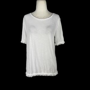 Ann TAYLOR LOFT ROUND NECK SHORT SLEEVE‎ SLUB JERSEY FRINGE T-SHIRT WHITE SMALL
