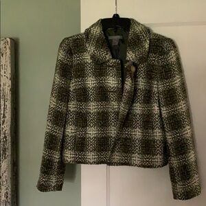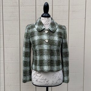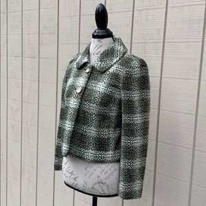 Ann TAYLOR PETITES Green/Off White Tweed Coat