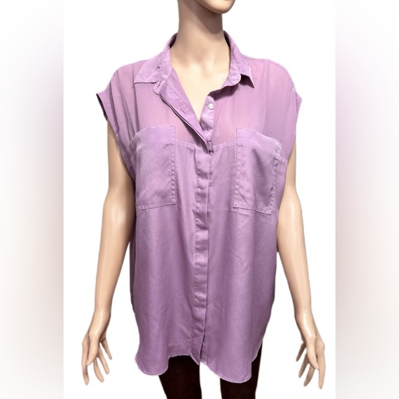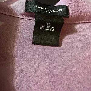 Ann Tailor Lavender Top Blouse Size XL Polyester Pockets Front