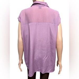 Ann Tailor Lavender Top Blouse Size XL Polyester Pockets Front 023