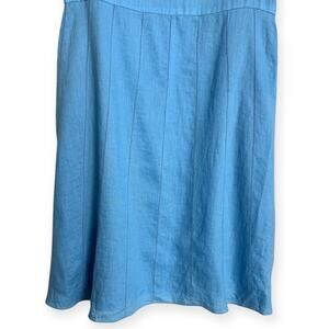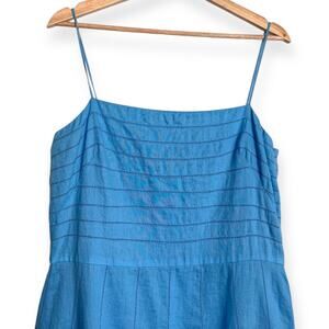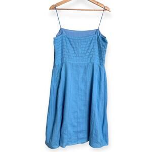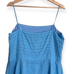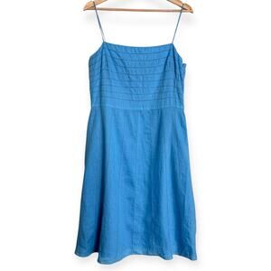 Ann Talylor Blue 100% Linen Spaghetti Strap Eyelet Fit N Flare Dress Women's 14P