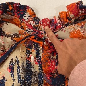 Stitching on one flap of color came undone and held together by safety pin bc I never tried to fix it. Clearly not visible when worn. (See photos)