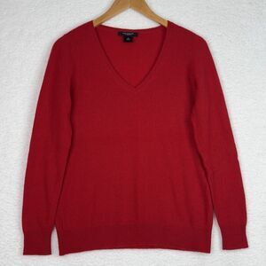 Ann Taylor 100% Cashmere Red V-Neck Sweater Women’s M Soft Classic Pullover