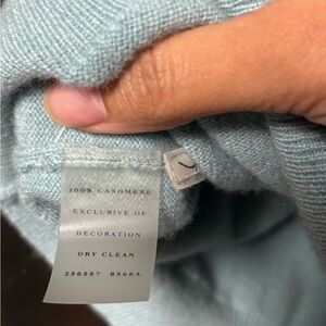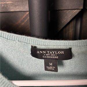 Ann Taylor 100% Cashmere Sweater M Blue Ruffle Front Short Sleeve Pullover Top