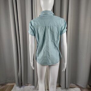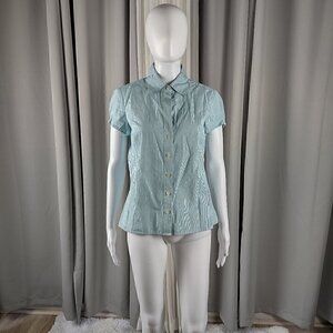Ann Taylor 100% Cotton Blue White Checkered Short Sleeve Button Down Shirt Size S