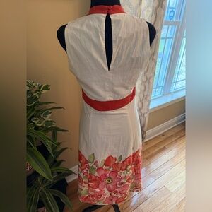 Ann Taylor 100% Cotton V Neck Sleeveless A Line White/Red Dress Women’s Sz 4