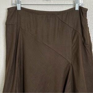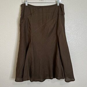 Ann Taylor 100% Linen Brown A-Line Flare Skirt, Size 8