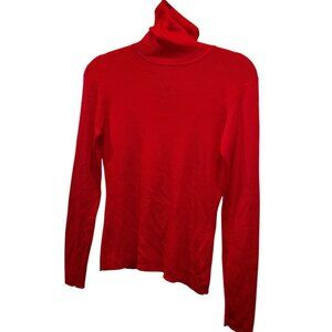 Ann Taylor 100% SILK red Christmas Holiday turtleneck S