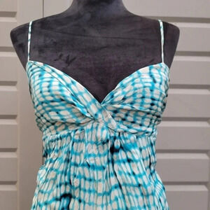 Ann Taylor 100% Silk Blue & White Turquoise Spaghetti Strap Dress Size 6