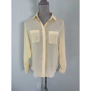 Ann Taylor 100% Silk Button Down Blouse Top in Light Yellow size Small