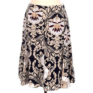 Ann Taylor | 100% Silk Cream & Black Floral Bohemian A-Line Skirt Size 10