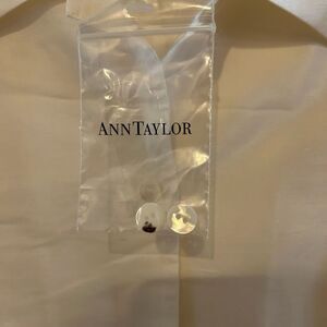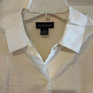 Ann Taylor 100% Silk Embroidered Cuff Sleeve Tunic White Blouse 10 New