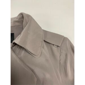 Ladies super cute pewter colored 100% silk trench style ruffled detail coat by Ann Taylor. Lightweight. Excellent condition. Ladies size XS.