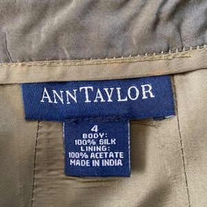 Ann Taylor 100% Silk Midi Skirt, khaki green, Size 4