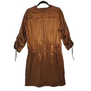 Ann Taylor 100% Silk Mini Dress Clay Brown Long Sleeve Pull-On Pocket Size 14