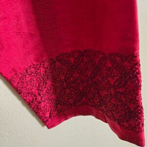 Ann Taylor 100% Silk Red Embroidered Cuff Wrap Blouse Size 8