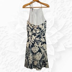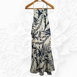 Ann Taylor 100% Silk White Halter Dress With Blue Flowers
