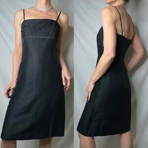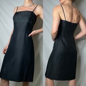 Ann Taylor 100% silk flower garden beaded midi slip dress slipdress floral vintage Y2K 90s fairy grunge. Slightly textured dupioni silk fabric with flower garden beading on the bust. Empire waist. Spaghetti straps sleeveless. Fully lined in acetate. 100% silk shell. Extremely faint deodorant transfer at the underarm area and one flower is missing it's beads (the most lateral flower on one side at underarm area). Gently used preowned condition.