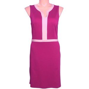 Ann Taylor 12 Dress Magenta Pink Purple Off White Trim V Neck Sleeveless Work