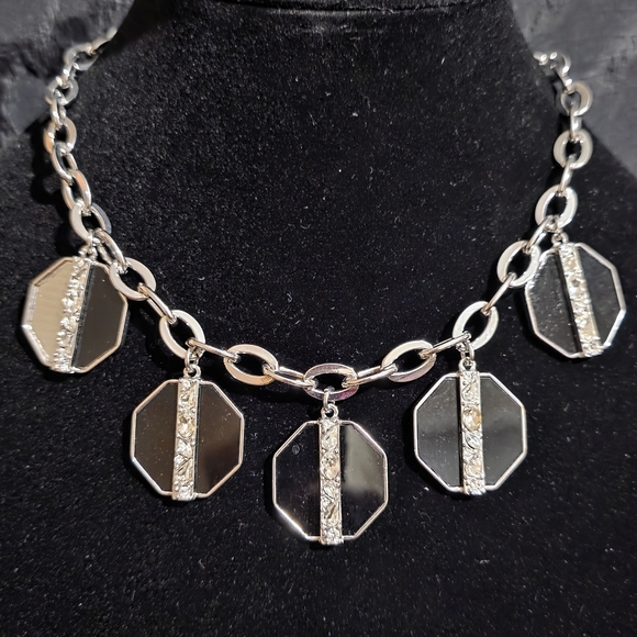 Ann Taylor 16 In Silver And Black Necklace with Geometric Cz Charms