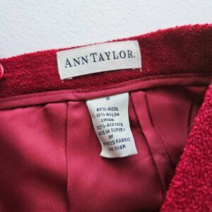Ann Taylor 2 pc Skirt Suit Size 6 Lined Cranberry Red Wool Blend Career Office