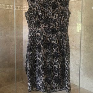 Ann Taylor 2P Sheath Dress Ruched Snakeskin Print Black & Tan