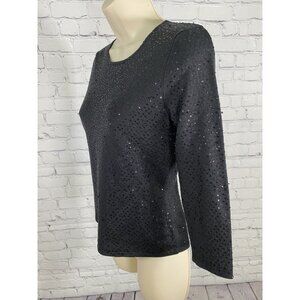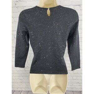 Ann Taylor 3/4 Sleeve Pullover Silk Blend Sequined Black Shirt Sweater Blouse XS