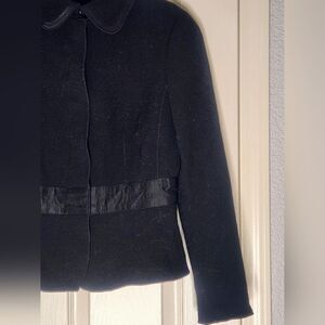 Ann Taylor 4 Black 100% WOOL Lined Longsleeves Bow Belted Women’s Jacket Coat