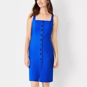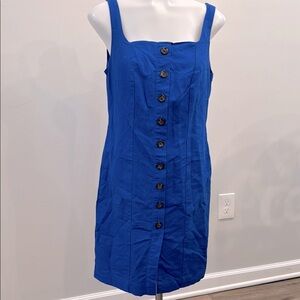 Ann Taylor 4 Petite Blue Button-Front Linen Blend Sheath Tank Dress