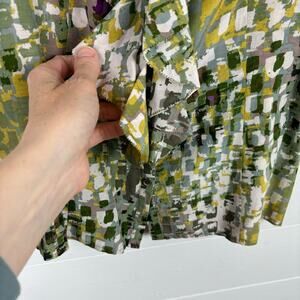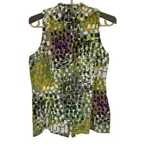 Ann Taylor 6 sleeveless ruffle blouse green abstract print silk cotton preppy