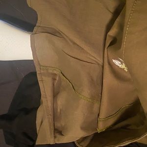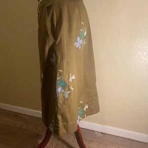 Olive green with blue and white flowers