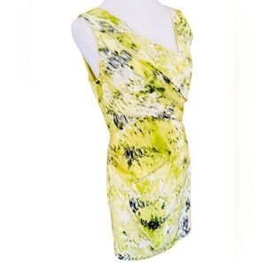 Ann Taylor 91% silk & spandex Assymetrical Neck green Watercolor Sheath Dress