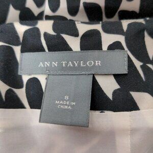 Ann Taylor A Line Pleated Skirt Black White Geometric Size 8