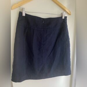 Ann Taylor A-Line Buckle Wrap Skirt Lined Size 4 Linen Blend Navy Blue Mini EUC