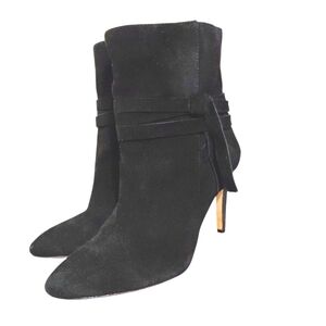 Ann Taylor Angie Black Suede Tied Ankle Boot Women's Heeled Bootie Size 8 M