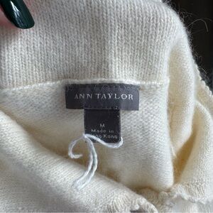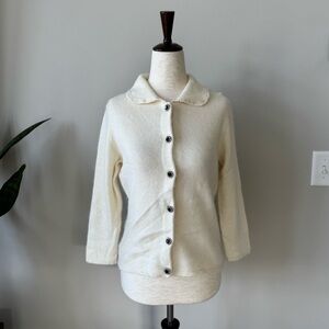Ann Taylor Angora Rabbit Hair Lambswool Cropped Sleeve Jeweled Button Cardigan